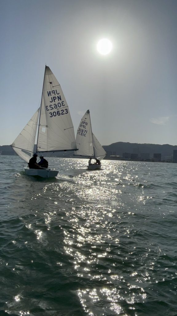 スナイプ級(西川/貴志)はスタートから抜け出しダントツの1位となりますが、42条違反の2回転、後ろから風が入ったこと、藻の影響などで神戸大学に最後の流し込みで抜かれ2位フィニッシュとなりました。