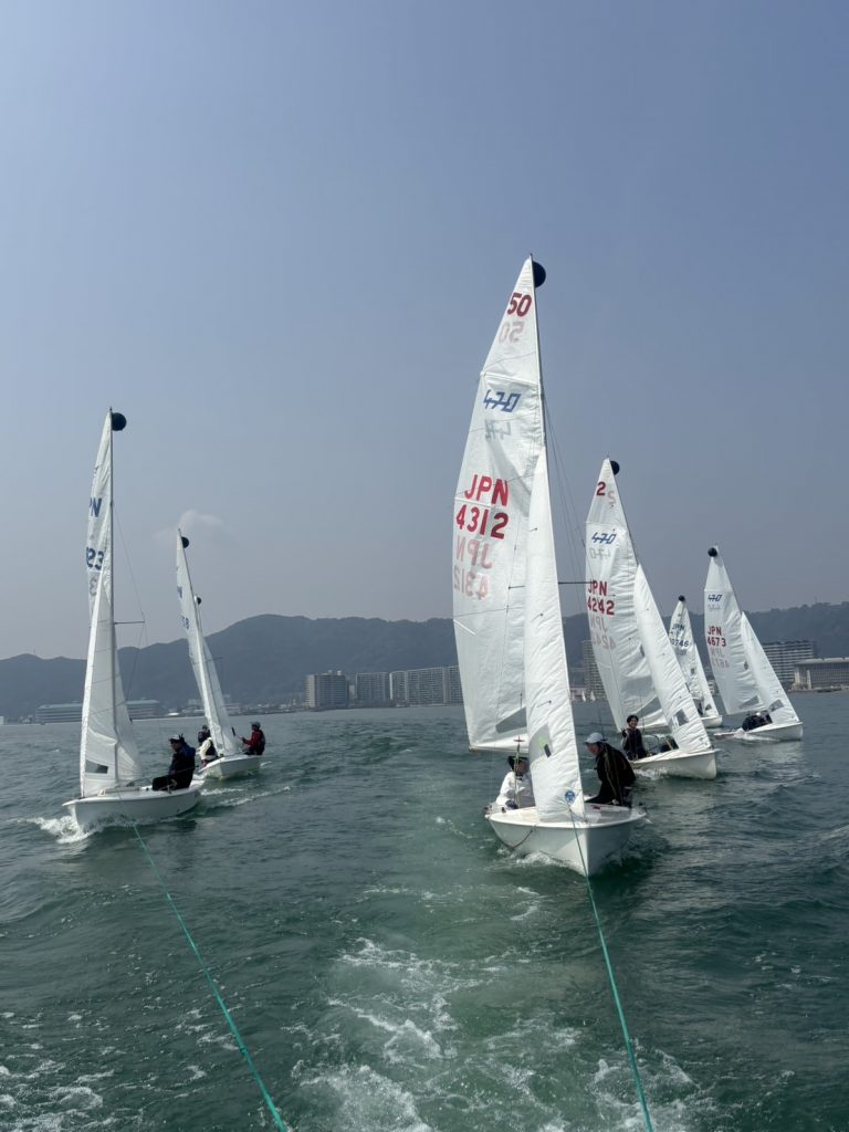 470級は素晴らしいスタートを決めますが、スタート後に京都大学とのケースで痛恨の720°回転で先頭集団から大きく出遅れ、必死に追い上げますが4位に終わります。